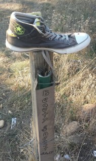 We find a pair of stylish green rimmed on the ground and try to think where we have seen them before. We decide to carry them and try to find the owner. Miraculously we do at a take-what-you-need-and-leave-a-donation food and rest area. They are Auras, and she is effusive in her thanks.
