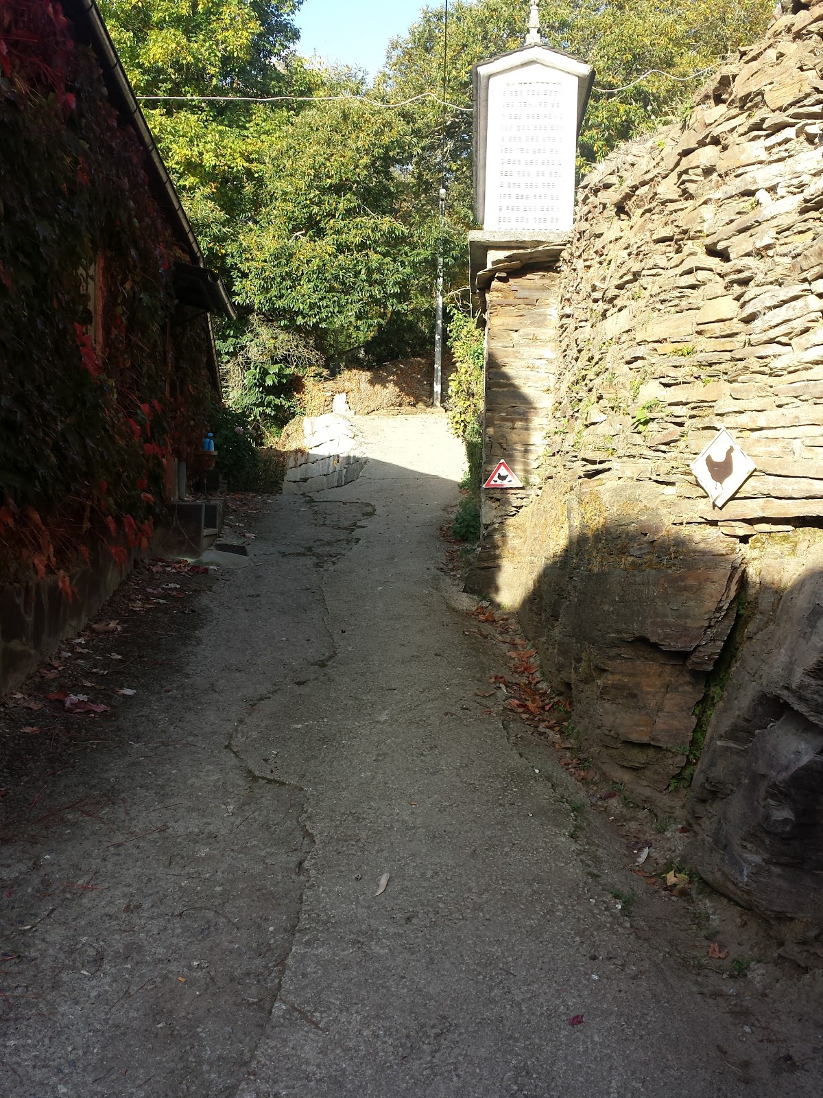 We choose to take a longer route via a river and past a Benedictine monastery. And extra 6 k but more scenic and less steep. At some point I find myself far ahead and when on a steep part of the trail I stop to check behind to see if I see Mats or Linda. Once spotted I continue on but at one point, past a tiny village with 4 chicken crossing signs and a lot of feathers within 500 ft on a very narrow road, I keep looking but not seeing anyone. I pull out my phone and open it at the exact time that Linda phones me wondering where I am. Mats is up on a road i crossed five minites ago, looking for me when Linda remembered she could phone me. It’s unusual for me to be in the lead. Once gathered together again, we continue on.