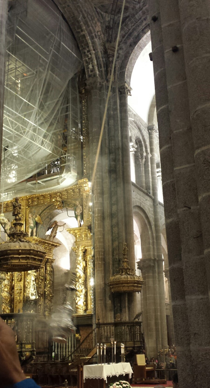 I had a good view of the altar and first few rows of the seats on three sides. On the centre aisle of seats I spotted Brad. In the crowds near me I thought I spied Aussie Wayne but he looked so different, clean shaven, at least ten lbs lighter and ten years younger. Linda told me later that yes, it was indeed him. El Grandio Italiano stood quietly nearby with an excellent view of the proceedings. I watched as he stepped aside and gave his place to someone else. Mats and Linda were of course there but some were missing. Thomas had to leave the day before. Rob had a date with his brothers ashes in Finisterre on Nov 3rd, so was on his way there. Tall gaunt Mat would probably be another two days. Steffen was of course missing but Steffen had videoed us earlier to congratulate us on making it to Satiago. He looked and sounded good but had been told he may never get his hearing in his left ear back.