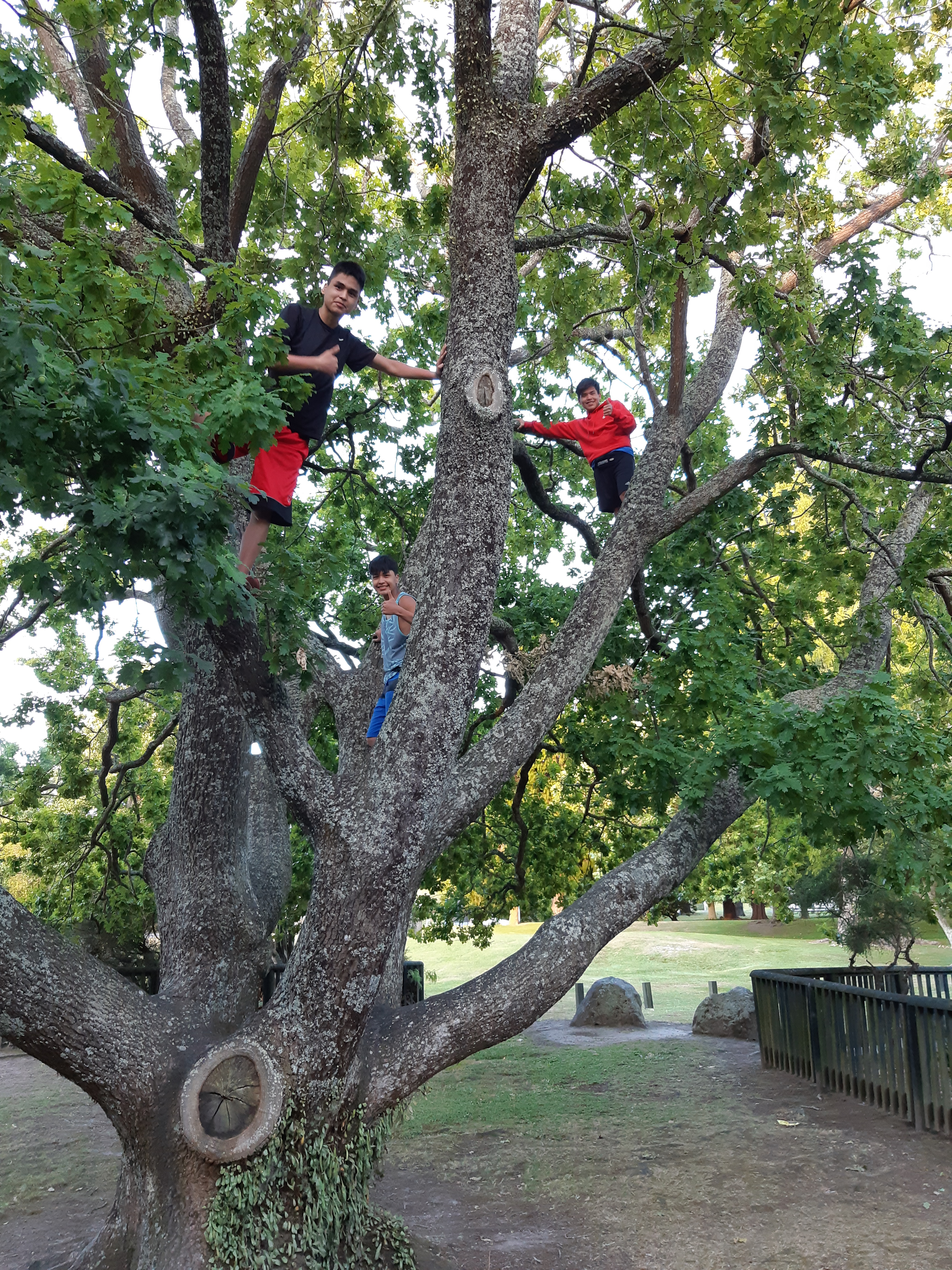 The next day is a driving day, we are headed to Waitangi, 6 hours north. Chris discovers that their is a totem pole at the north end of Auckland, two minutes off our route. It has an intriguing story. A hundred years ago, three Maori came on a ship from New Zealand and landed on Vancouver Island. They married three Hesquiaht women and took them back with them. Tim Paul a Hesquiaht carver is related to the descendants and carved this pole to commemorate them.