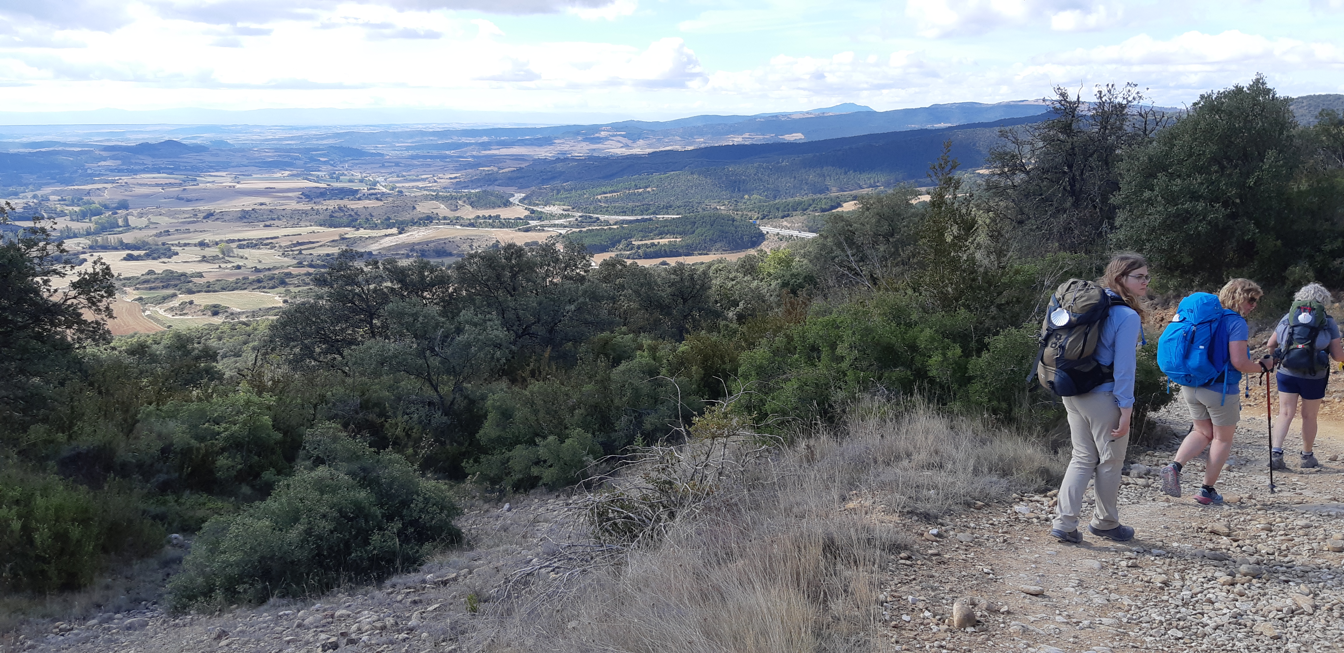 At the alto, we are at ‘the place where the path of the wind meets that of the stars’. And we are truely at the top of the world. We can see all the way to Pamploma and on the other side, our destination Puente la Reina.