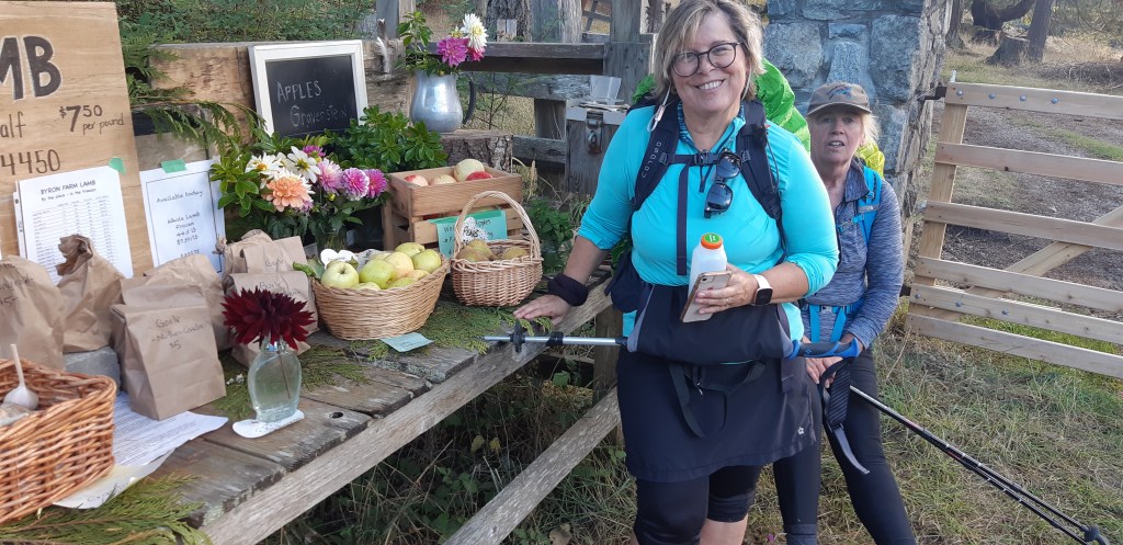Despite the hills, the walk was worth it. The sun shone and the breeze was just the right temperature. I should mention that we avoided the main Ganges to Fulford Rd and veered off it onto Beddis and eventually onto Beaver Point Rd into Fulford. Not much traffic and great scenery. Our hike took us past vineyards, farms, many roadside stands selling garlic, veggies, lamp, chickens, fresh apple juice and plants. We even saw heirloom pumpkins that cost $34!
